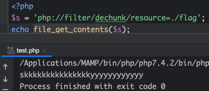 convert.iconv.L1.UCS-4LE过滤器会将字符串长度扩大4倍,对一个非空字符串多次应用这个过滤器,它会快速达到 PHP 的内存限制,并引发一个 500 错误。 - dechunk 过滤器: