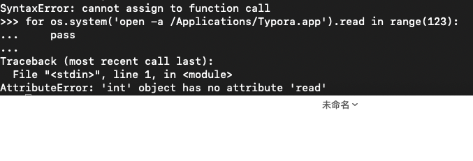 它会提示**AttributeError: 'int' object has no attribute 'read'**,但与此同时还执行了os.system('open -a /Applications/Typora.app')。