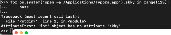 for os.system('open -a /Applications/Typora.app') in range(123):