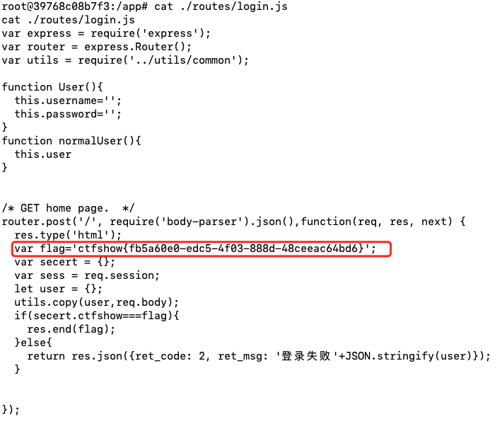 这里要让secert.ctfshow==='36dboy',但是secert是一个空对象,并没有ctfshow这个属性。不过utils.copy(user,req.body);执行了一个对象拷贝的操作,这也是原型链攻击的点。