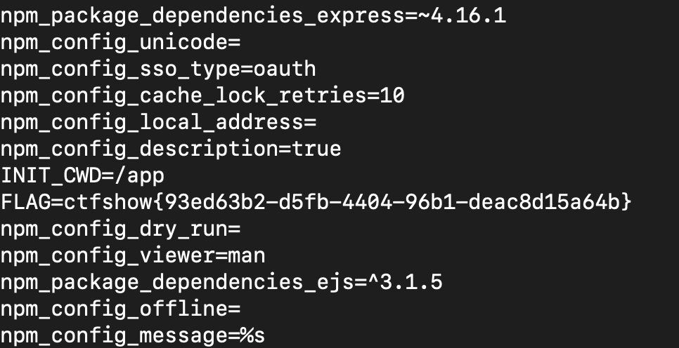 根据package.json的版本信息可以知道"ejs": "^3.1.5",考点:ejs模板引擎rce,原理之后再看,先跟着打一遍。