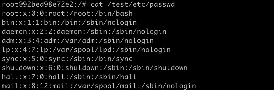 在容器内部执行以下命令,将宿主机文件挂载到 /test 目录下