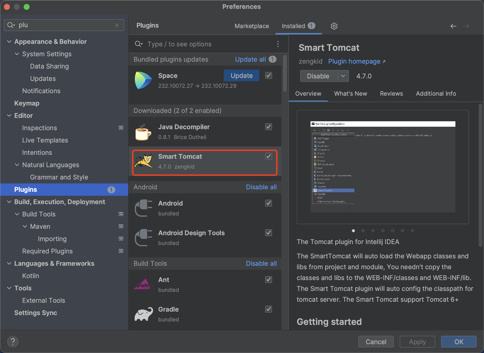 添加插件后,Setting栏目就会多了Tomcat Server。在里面配置你的Tomcat目录