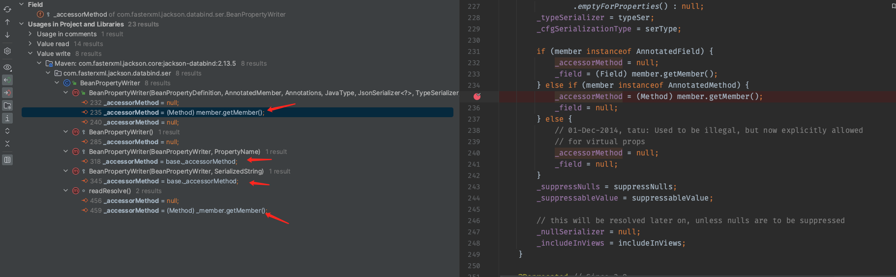 追踪这个member的传递,发现它最初是在com.fasterxml.jackson.databind.ser.BeanSerializerFactory#findBeanOrAddOnSerializer中被赋值。