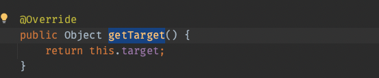 这个advised是一个AdvisedSupport对象,我们用它的setTarget方法设置targetSource属性。setTarget接受一个对象target,然后用target实例化一个SingletonTargetSource对象。在SingletonTargetSource#getTarget将target返回,进而实现了反射调用方法。