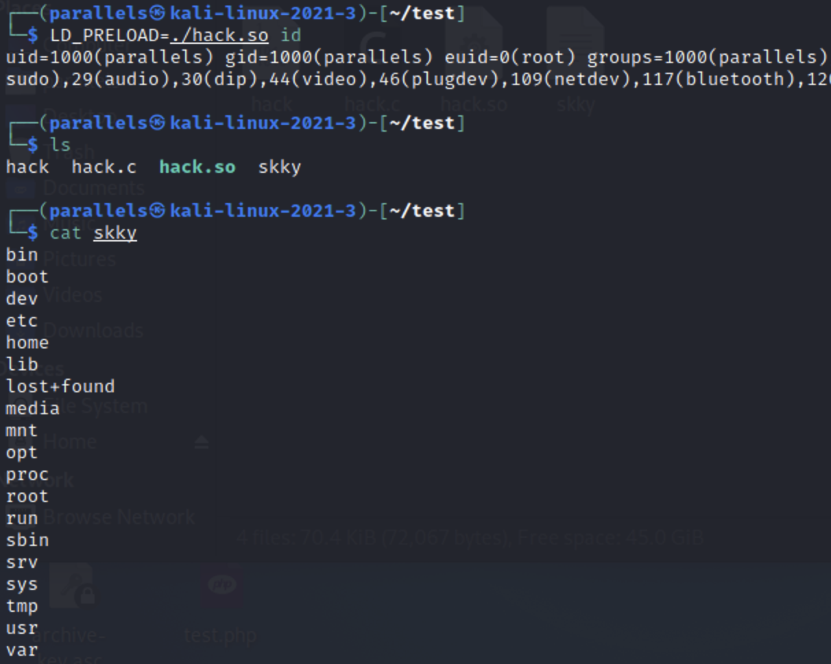 但如果没有sendmail呢(我的kali就没有装)?事实上只能劫持某个特定的函数也挺麻烦的,不过还有一种更万能的方法。使用下面的代码,来制作我们的共享库: