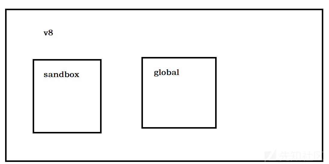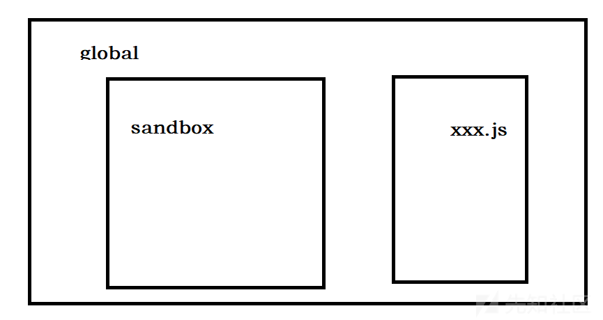 还有就是在当前global外再创建一个作用域,此时这个沙箱对象就是这个作用域的全局对象,沙箱内部无法访问global中的属性。