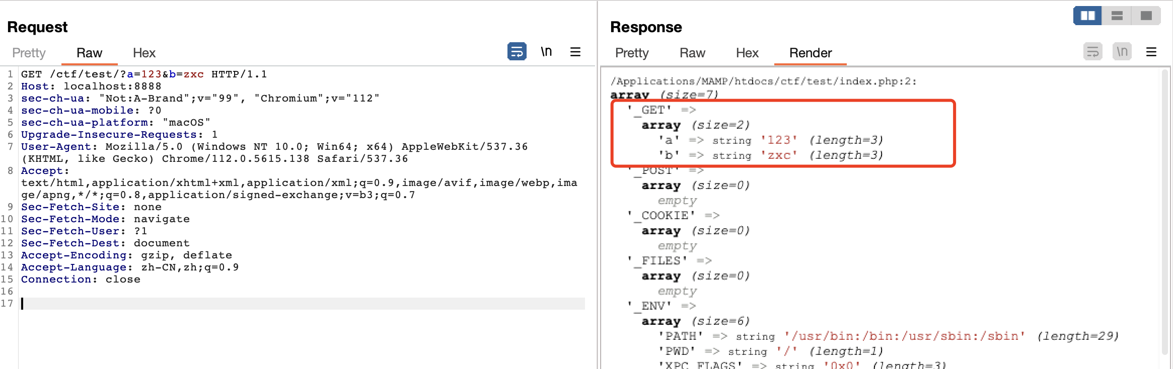 和上面在请求头中把执行的代码取出,get_defined_vars则是把执行的代码从GET请求参数中取出。