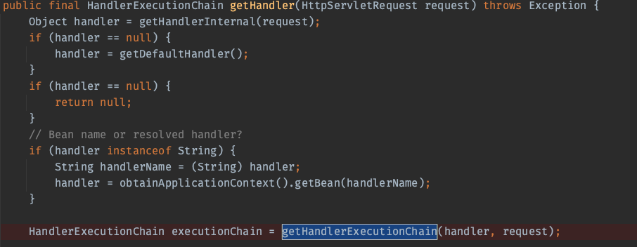 HandlerMapping 的 getHandler 方法中会调用getHandlerExecutionChain方法获取HandlerExecutionChain