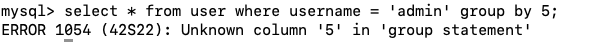 group by可以将查询结果按一个或多个列进行分组,group by后面可以跟一个或多个数字,这些数字代表查询语句select部分中列的位置。所以指定了超过列的数字的时候,就会提示: