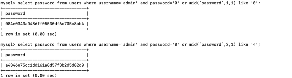 password这个反引号包裹的password返回的是user表的这个列,在这个匹配中mid(password,1,1)='a'只要这一列有满足要求的条目,就会返回这个条目。