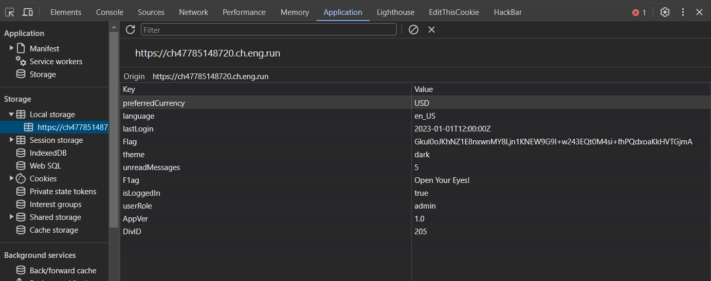 robots.txt得到Decryption key: th1s_1s_n0t_t5e_f1a9。L3NlY3JldC1sb2NhdGlvbg== 可以base64 -> /secret-location,去/secret-location可以找到local storage有東西