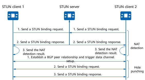 STUN协议就是配合NAT来实现这个过程的,它可以让用户拿到映射地址。这个过程如下: