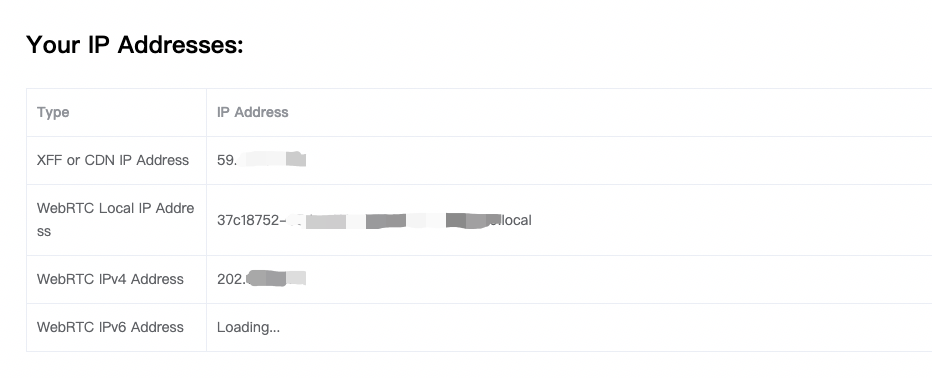 { type: 'WebRTC IPv4 Address', address: 'Loading...' },
